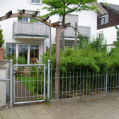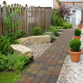 Besonders kleine Grundstücke bedarfen einer gut überlegten Planung damit eine optimale Lösung entstehen kann. Durch Belagsänderung und räumliche Gliederung kann auch ein handtuchschmales Gründstück abwechselungsreiche Perspektiven bieten.